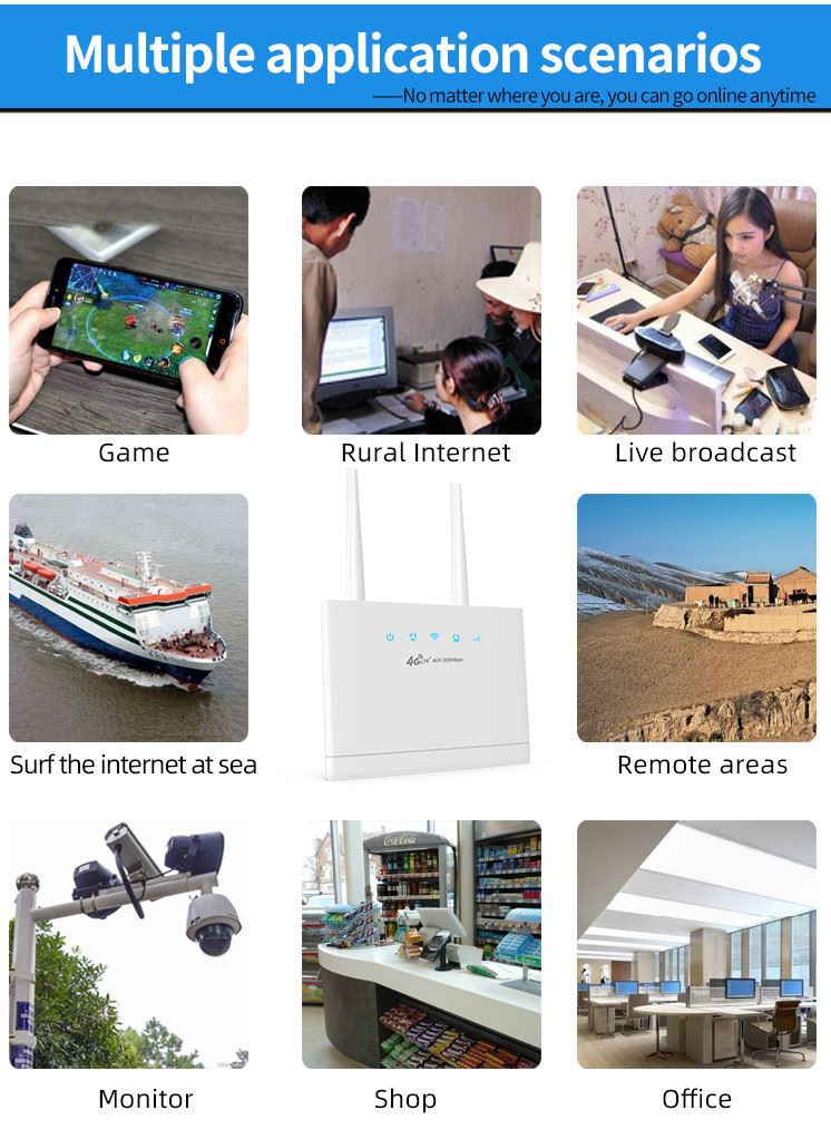 B311 on 802.11b/g/n langaton laajakaistainen 3G/4G-reititin, jossa on täydellinen all{5}}yhdessä-verkkoratkaisu. Käyttäjät voivat muodostaa yhteyden ja jakaa nopean 4G- tai kaapeli-/xDSL-laajakaistayhteyden. Tämä monitoimireititin integroi 1 10/100 Mbps Ethernet WAN/LAN -portin sekä jopa 300 Mbps:n siirtonopeuden ja tukee SPI:n NAT-palomuuria, älykästä liikenteenohjaustekniikkaa ja käyttäjäystävällistä WebUI-pohjaista hallintaliittymää. Se voi tarjota tarpeeksi kaistanleveyttä suurten kaistanleveysvaatimusten soveltamiseen, voi katsella online-videoita samanaikaisesti, kuunnella digitaalista musiikkia, pelata online-pelejä, siirtää suuria tiedostoja, VoIP-puheluita ja surffata verkkosivuilla.